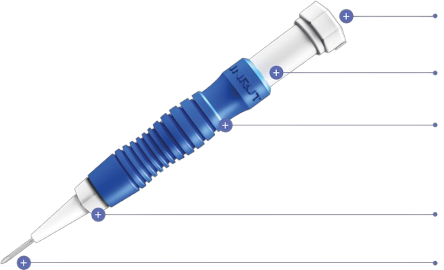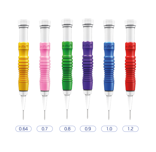 用手抓住毛发移植装置进行手术的部件。有固定针盒作用,并且根据外壳的颜色,针头的外径各不相同。 黄色 : 0.64mm / 粉红色 : 0.7mm / 绿色 : 0.8mm / 紫色 : 0.9mm / 蓝色 : 1.0mm / 红色 : 1.2mm
